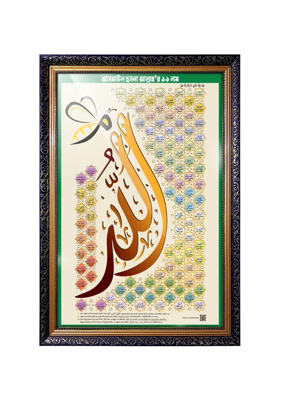 আল্লাহর ৯৯ নাম আসমাউল হুসনা- Golden Black Frame 23×33 inch